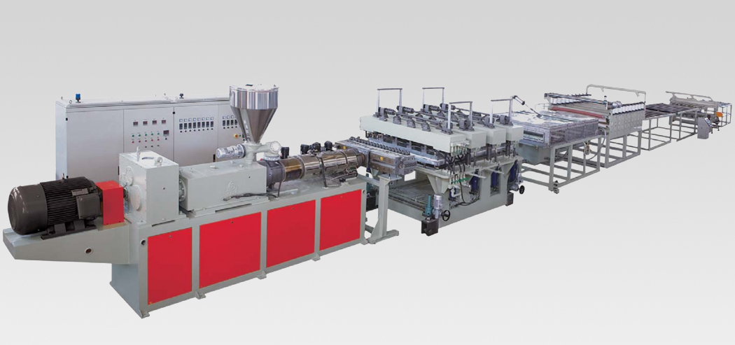 共擠發(fā)泡板生產(chǎn)線:是金韋爾機(jī)械新研制的發(fā)泡板材機(jī)組,通過共擠擠出機(jī)復(fù)合表層不發(fā)泡的硬質(zhì)PVC層,極大的提高了發(fā)泡板材的表面硬度,該機(jī)組性能穩(wěn)定、技術(shù)先于國內(nèi)先進(jìn)水平。